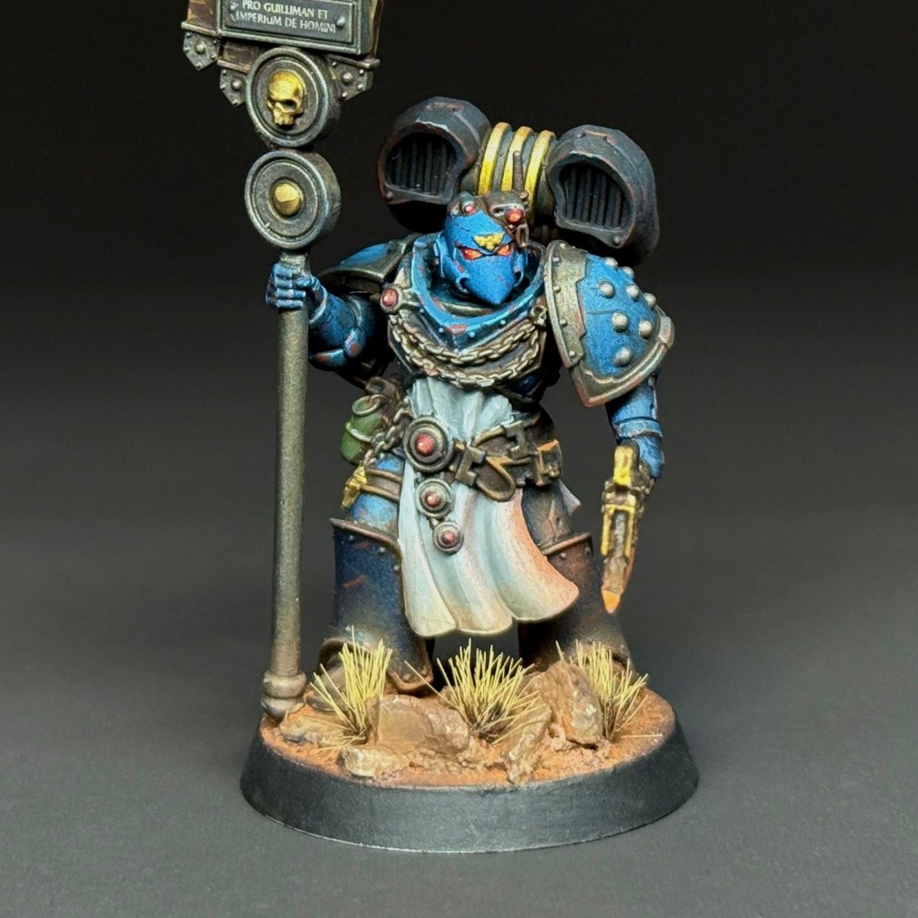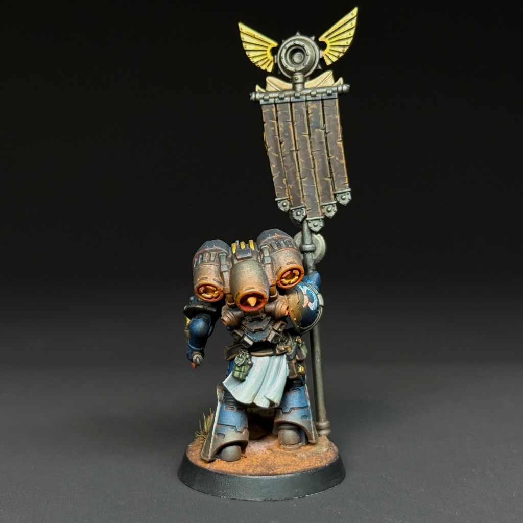 Centurion Pulchra recites Macraggean battle hymns mid-combat, her voice ringing out even over the roar of bolters. Some say it’s stirring. Others say it’s insufferable. Everyone knows it means the charge is coming. Whether you find her inspiring or unbearable often depends on whether you’re winning—or losing. Either way, when her banner rises and her voice soars, the line does not break.