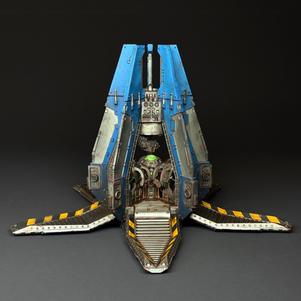 Unlike most of its kind that get destroyed or discarded after each mission, Gravis Umbra has been logged in every campaign record of the 121st since the Ophidian Halo. It has delivered squads into burning hives, chemical storms, and through orbital firestorms—and survived each descent. Its machine-spirit is temperamental, the retros always firing a heartbeat later than comfort allows, but Presca’s warriors consider it a special honor to ride in Gravis Umbra.