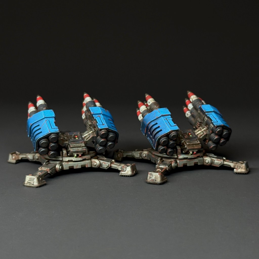 The Hyperios-pattern Tarantula integrates an automated tracking suite calibrated to the airframes of known traitor Legions. Its anti-air missiles are capable of independent target lock or full integration with command auspex relays, forming a mobile, automated defensive curtain. In Ultramarine doctrine, Hyperios systems are deployed in clusters to shield armored columns and critical assets from aerial incursion.